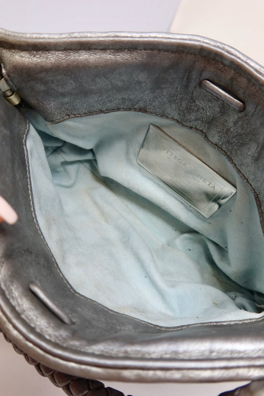 Bottega Veneta Intrecciato Leather Silver Shoulder Bag
