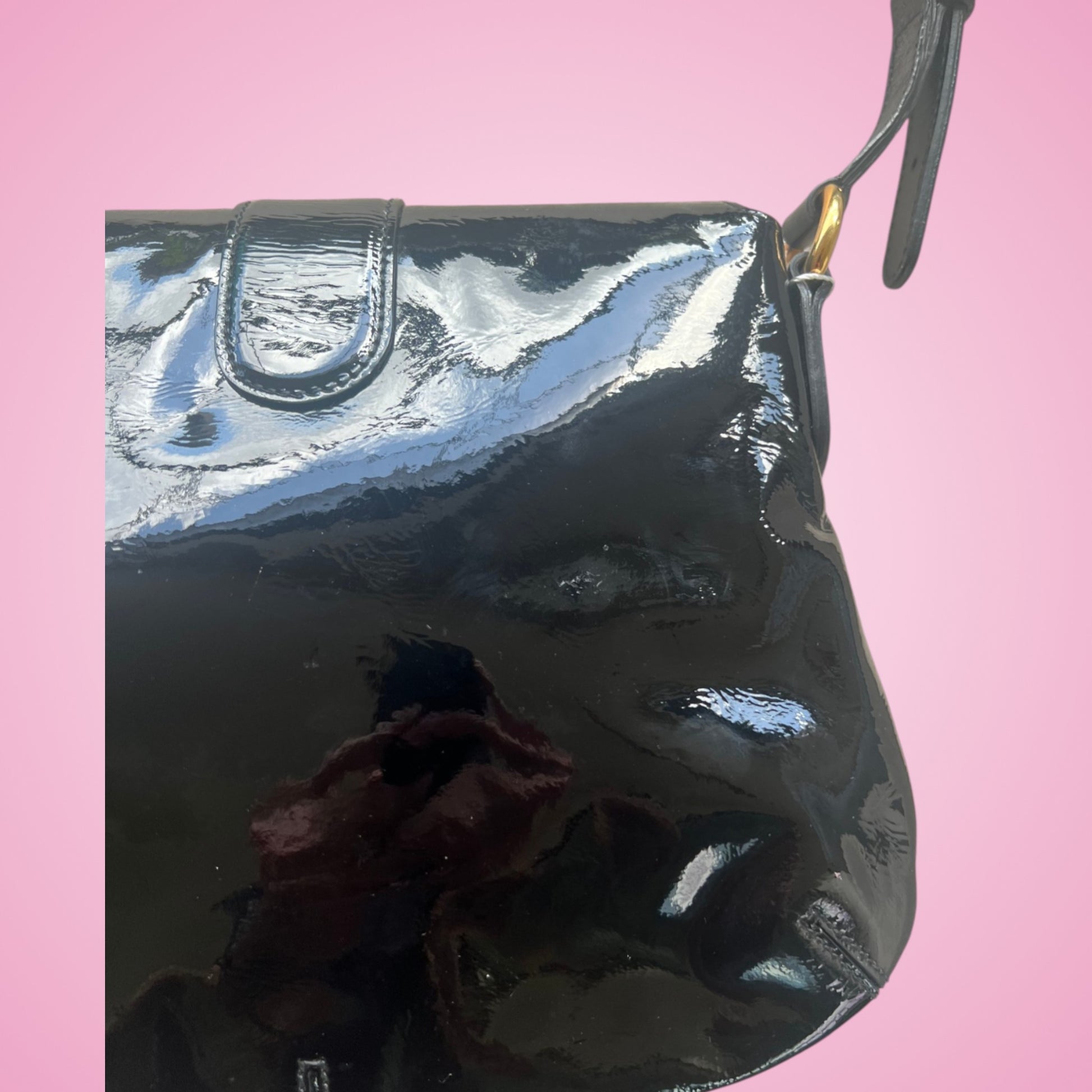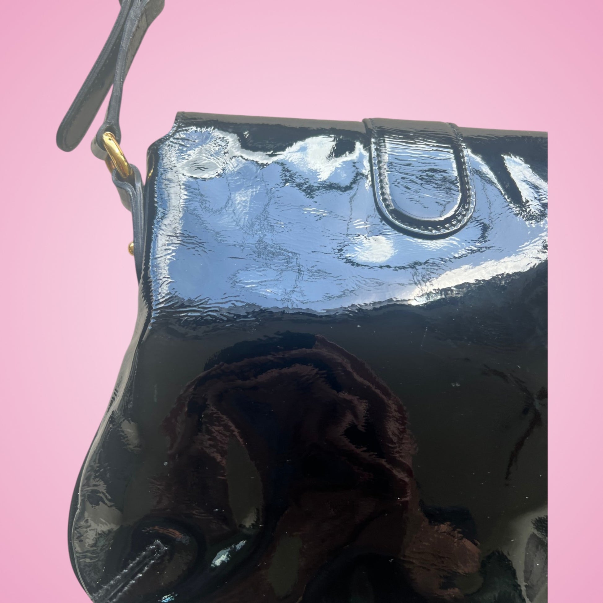 Gucci Wave Hobo Flap Bag Black Patent Leather
