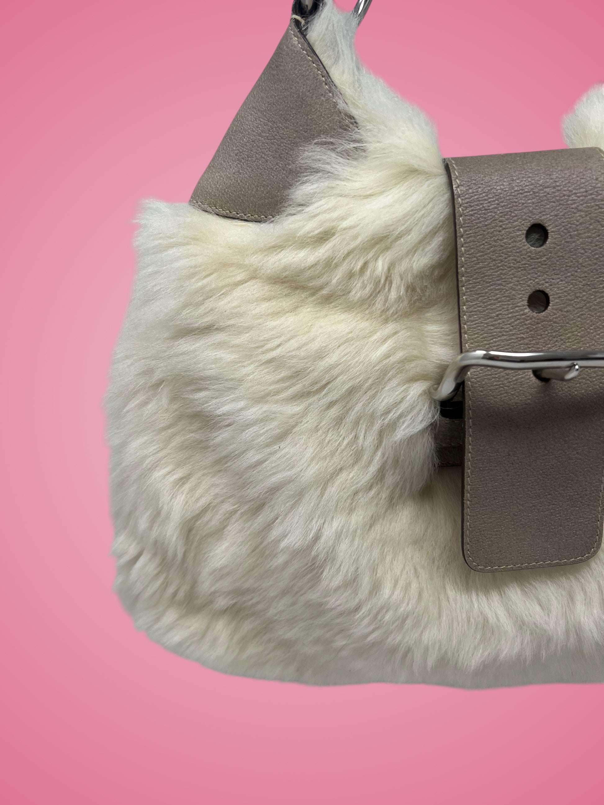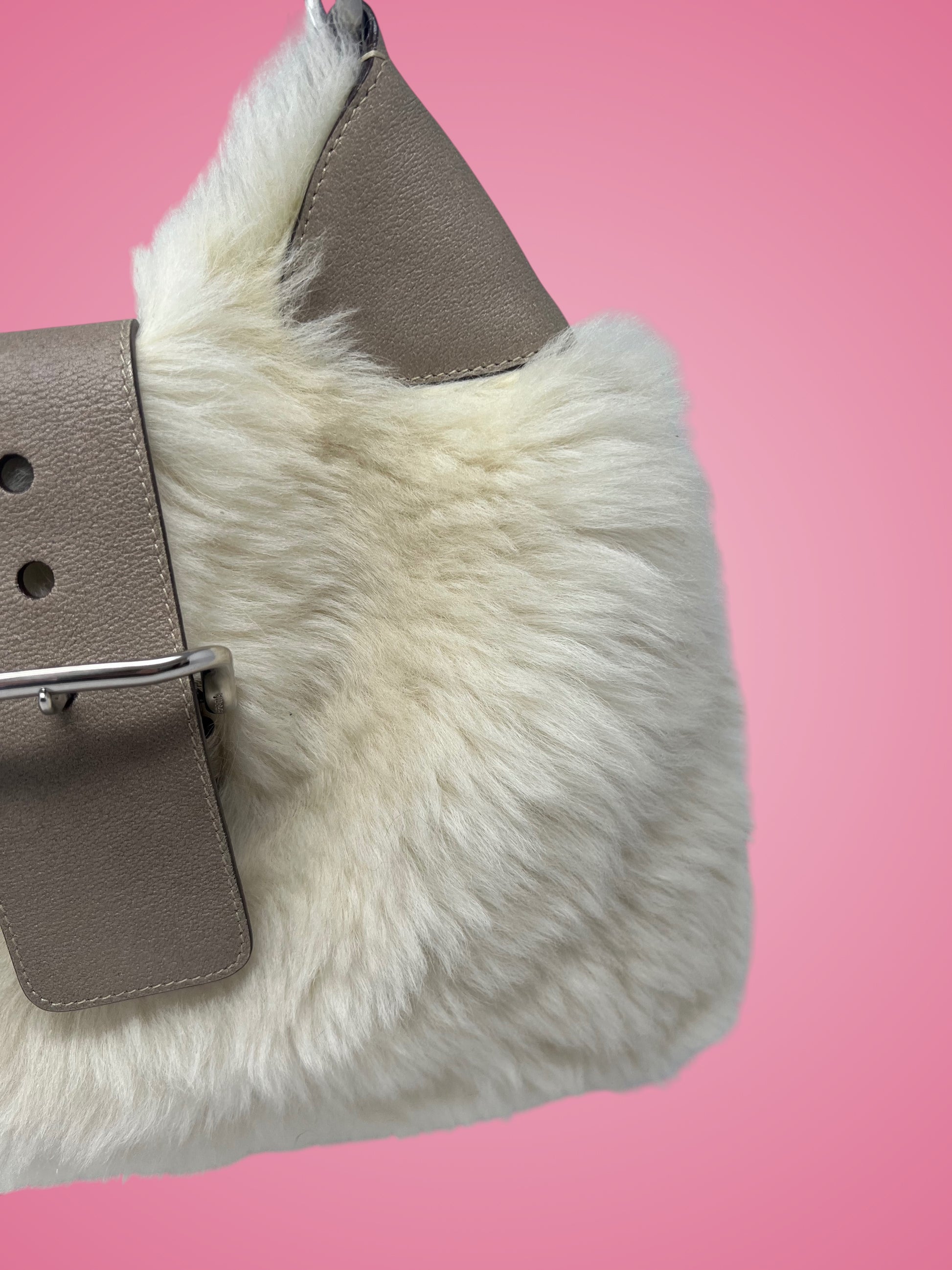 Prada White Fur Shoulder Bag